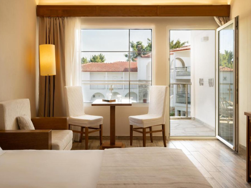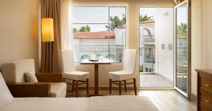 Unitățile de cazare de la Hotelul Alexander the Great Beach sunt dotate cu aer conditionat, TV prin satelit si minibar. Fiecare unitate are balcon mobilat, cu vedere la mare sau la imprejurimile luxuriante.